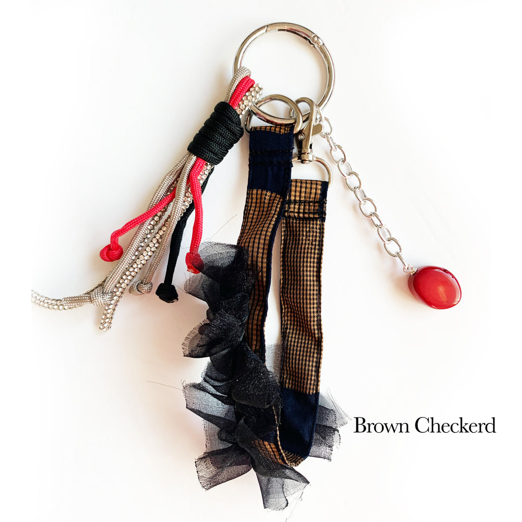 Brown Checkerd Bagcharm : paradord with Coral power stone